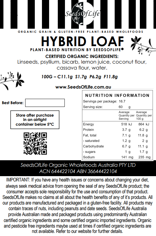 Crusty Bagette. Soft textured bread. Certified Organic Ingredients Linseeds, psyllium, coconut flour, cassava flour, lemon-juice, filtered-water, bicarb. Allergy friendly.