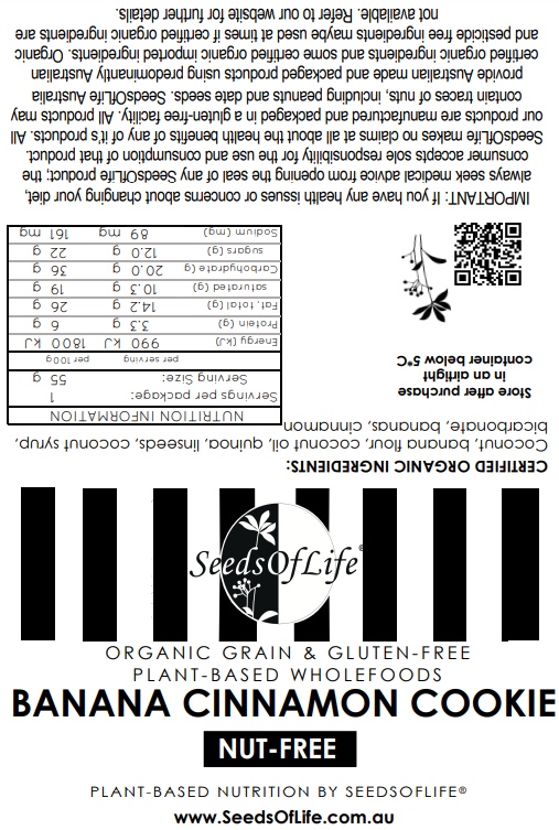 Coconut, banana flour, coconut oil, quinoa, banana, linseeds, coconut syrup, bicarbonate, cinnamon.