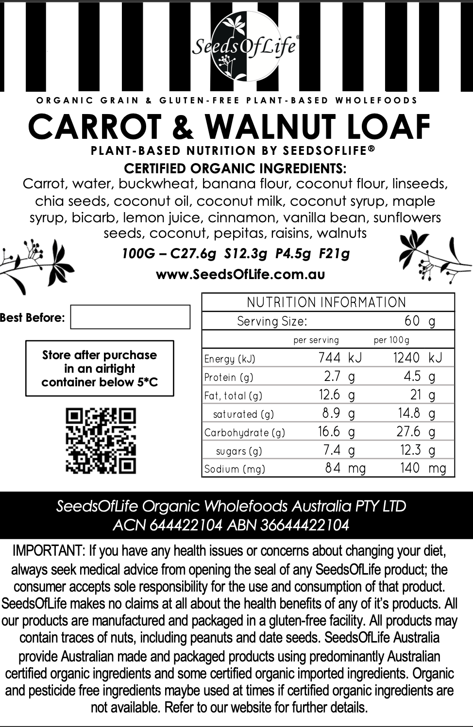 Carrot, water, buckwheat, banana flour, coconut flour, linseeds,