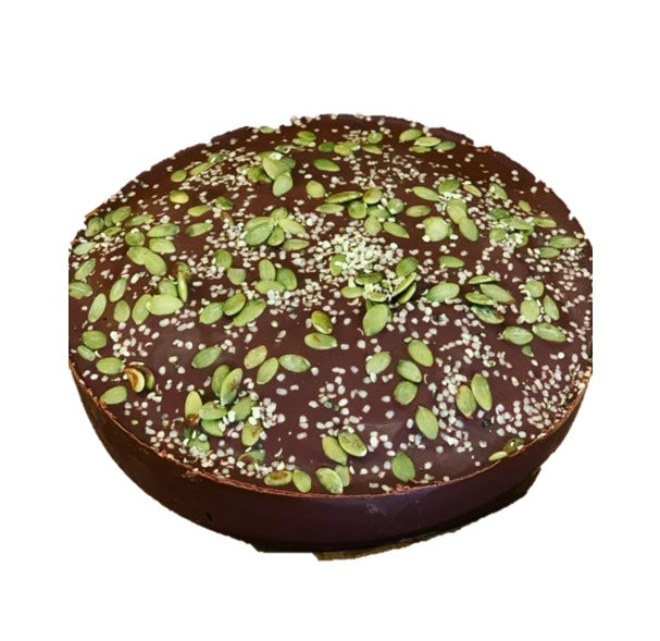 Ganache: Cacao, cacao butter, maple syrup, coconut cream, hemp seeds, pumpkin seeds