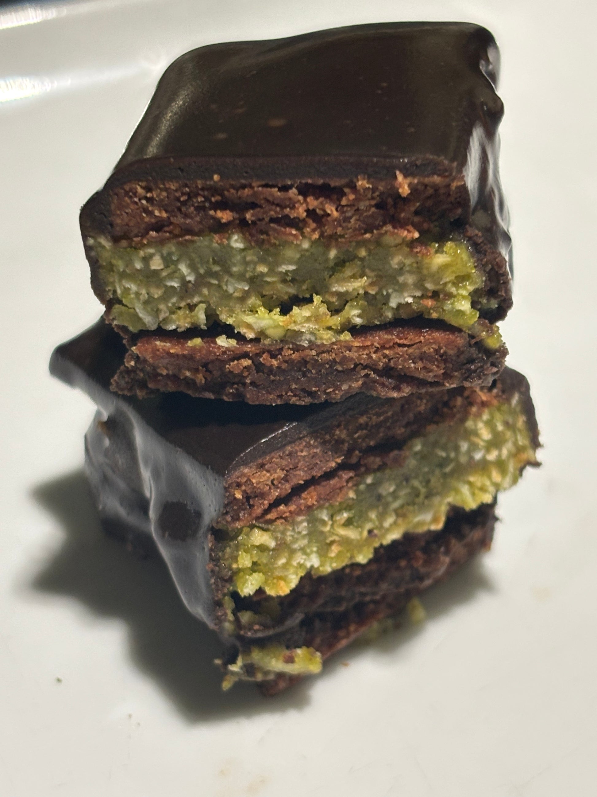 Filling Pistachio, cashew, tahini, maple, coconut cream, shredded coconut