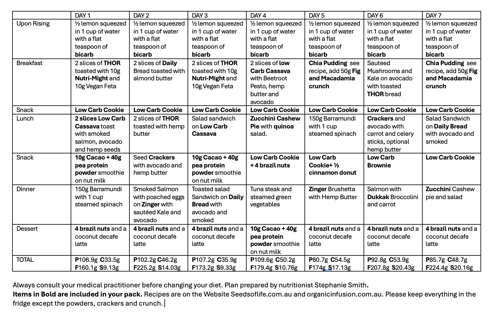 Includes SeedsOfLife products on the meal plan and delivery